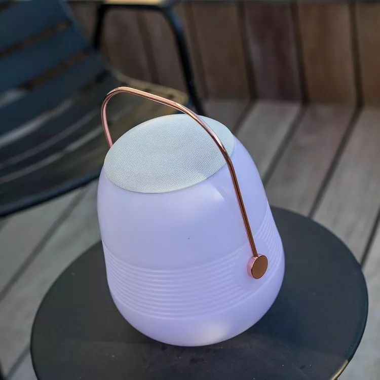 - LAMPE ENCEINTE BLUETOOTH SANS FIL : la lampe enceinte Bluetooth Bob Station sans fil est une lampe nomade avec une base LED intégrée blanc / blanc chaud / multicolore avec une intensité variable et une enceinte d’une puissance de 10W. Loin d’être une lampe ou une enceinte comme les autres, elle séduit par son originalité. Connectez-vous en Bluetooth avec votre smartphone ou votre tablette et diffusez la musique partout avec son haut-parleur intégré ! Ses variations de lumière au rythme de la musique lui donnent un style inimitable. Appréciez aussi sa poignée cuivrée : la lampe Bluetooth Bob Station se pose, se transporte ou se balade au gré de vos envies.